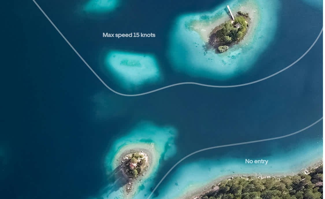 Restricted areas, precautionary areas, and cautionary zones now appear at lower zoom levels. That means you no longer need to zoom in deeply to see if a passage is subject to special rules. Depth labels also appear at lower zoom levels, giving you bathymetry information at a glance.